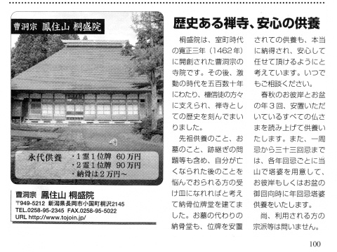 『週刊文春』の今週号(2007年8月2日号/7月26日発売)の永代供養についての記事のページに、桐盛院の永代供養の広告を掲載しました。